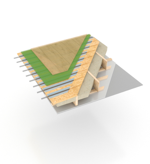 Komplette paneler leveres med alt fra konstruksjonsbjelker, kledningsplate, akustisk isolasjon og lekter for montering av gipsplater.